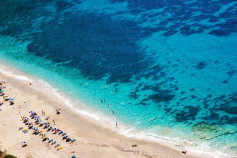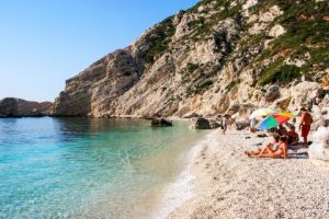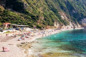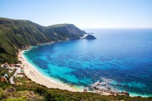 Petani Beach Kefalonia: Petani is a magnificent beach located in a distance of 20 km west of Argostoli, the capital of Kefalonia, in the beautiful peninsula of Paliki. It consists of blue crystal waters and a stunning landscape of huge verdant cliffs that reach the blue sea. The water deepens right away and there are usually big waves in Petani.